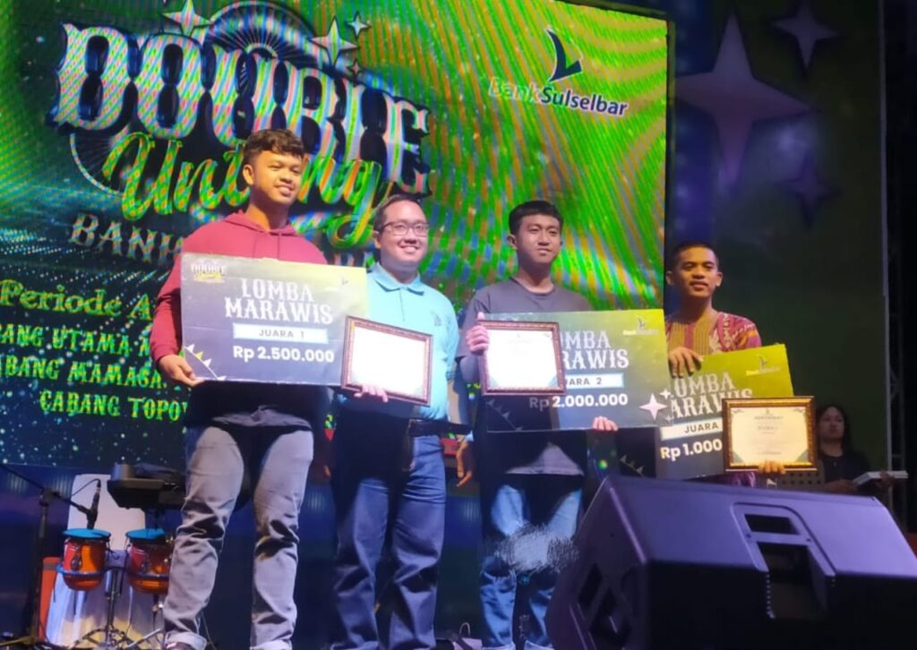 Marawis Fan At Tauhid kembali menorehkan prestasi pada acara Road show Double untung Bank Sulselbar di anjungan pantai Manakarra, Ahad (05/03/2023). Berhasil menjadi runner up lewat lantunan Isyfa’lana. Kalimat-kalimat pujian kepada Nabi Muhammad SAW dan harapan untuk mendapat syafa’atnya dibawakan dengan apik oleh sang vokalis, Syamsul. Prestasi yang membanggakan mengingat perlombaan marawis sebagai salah satu dari rangkaian kegiatan road show tersebut mengakomodir peserta dari berbagai kalangan.