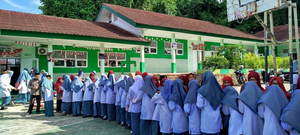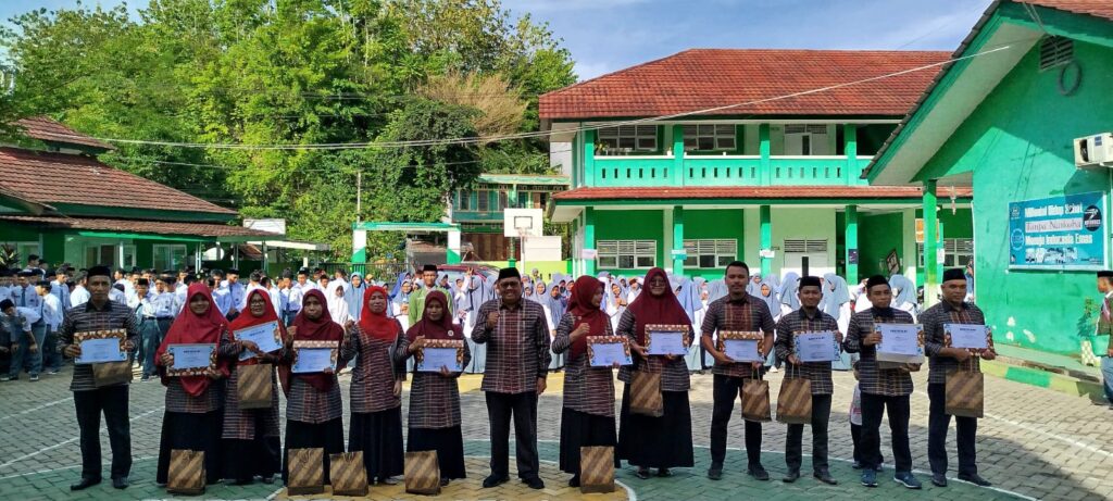 Upacara ini berlangsung di halaman madrasah sejak pukul 07.30 WITA, melibatkan seluruh civitas madrasah dengan semangat apresiasi dan penghormatan kepada para pendidik.