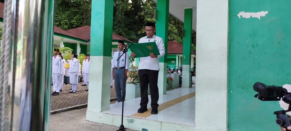 Pembina dan Pengawas Madrasah, Ma’ruf B, S.Pd., selaku Pembina Upacara, memberikan amanat yang membakar semangat sekaligus menyentuh hati seluruh peserta upacara.